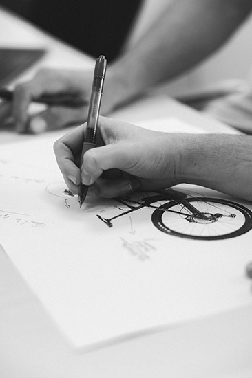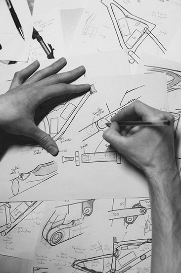 Van fantasie naar papier. Voor abstracte denkers zoals ontwerpers moet dat het meest inspirerende en spannende moment in het rijpingsproces van een fiets zijn. Hun concepten veranderen in schetsen en komen zo tot leven. Het ontwerpproces is de overgang tussen wat ze dromen en wij uiteindelijk aanraken.