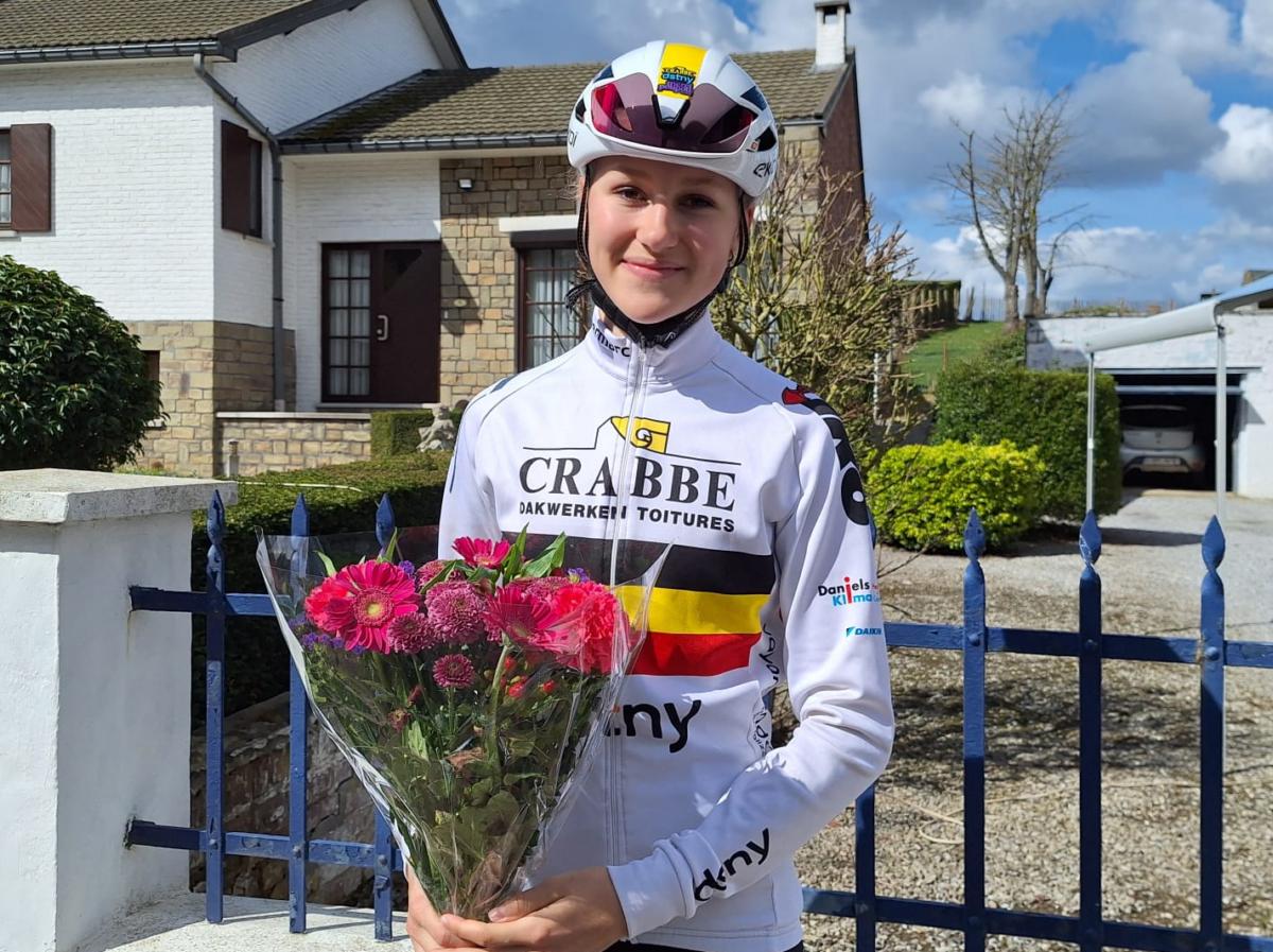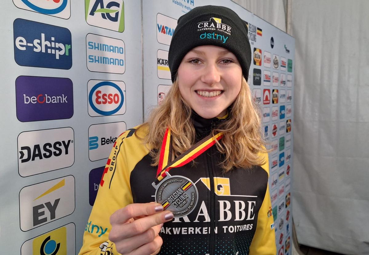 Haar prestatie krijgt extra glans doordat ze in de samengevoegde wedstrijd met de junioren als 3e over de streep kwam. Een resultaat dat haar zelfvertrouwen een boost geeft. “Ja, ik ben daar wel trots op”, klinkt het. “En ik ben ook heel tevreden met mijn eigen wedstrijd.” Dat Lotta Huybrechts een podiumplaats pakt, is geen verrassing. Ze is een fenomeen op meerdere terreinen. “Ik rijd voor Crabbé-Dstny en ik combineer de weg, het cyclocross en het mountainbike”, legt ze uit. En niet zonder succes. “Op de weg en in het mountainbiken ben ik Belgisch kampioene. In het veld moet ik echter mijn meerdere erkennen.”