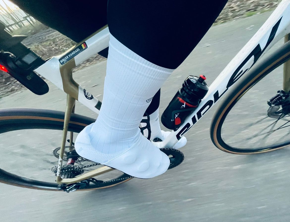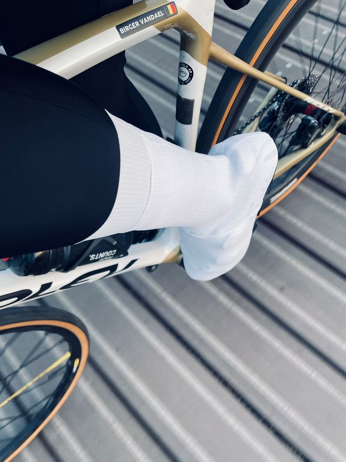 De Spatzwear Windsock 2 zit erg strak en voelt heerlijk aan om te dragen. Het voordeel uit zich op 2 manieren: alles voelt tijdens de fietsrit strak en je bent er zeker van dat de schoenen proper blijven. Wit is momenteel bijzonder in, al is dit een trend die doorheen de geschiedenis altijd komt en gaat. Wij zijn in elk geval fan. Misschien hopen ze bij Spatzwear wel opnieuw op een natte Roubaix… al was het maar omdat er dan toch eentje met witte schoenen over de meet zal komen.