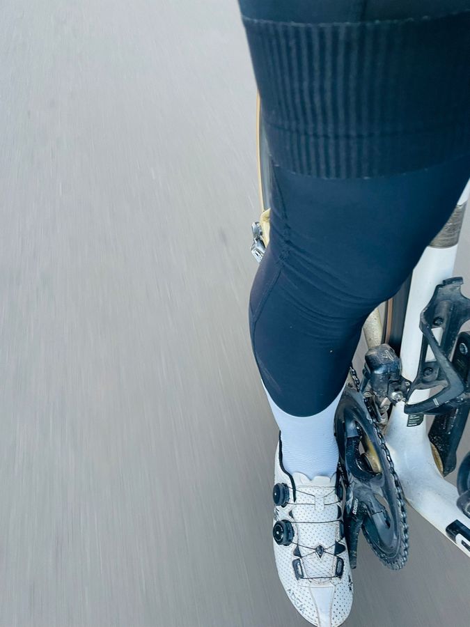 Wij trokken als eersten de beenstukken aan. AGU biedt speciale beenstukken aan voor de zomer en heeft naast de basisbeenstukken ook exemplaren tegen de regen met een DWR-coating. We proberen deze uit en zijn meteen verbaasd over hoe strak ze zitten. Op die manier ‘regent het niet naar binnen’ en vormt een korte regenbui geen probleem. We moeten aanvankelijk wel even wennen aan de compressie, wat voor een renner nooit een probleem hoeft te zijn. Na een tijdje voelen we de beenstukken niet meer en inderdaad, ze werken goed bij natte omstandigheden.