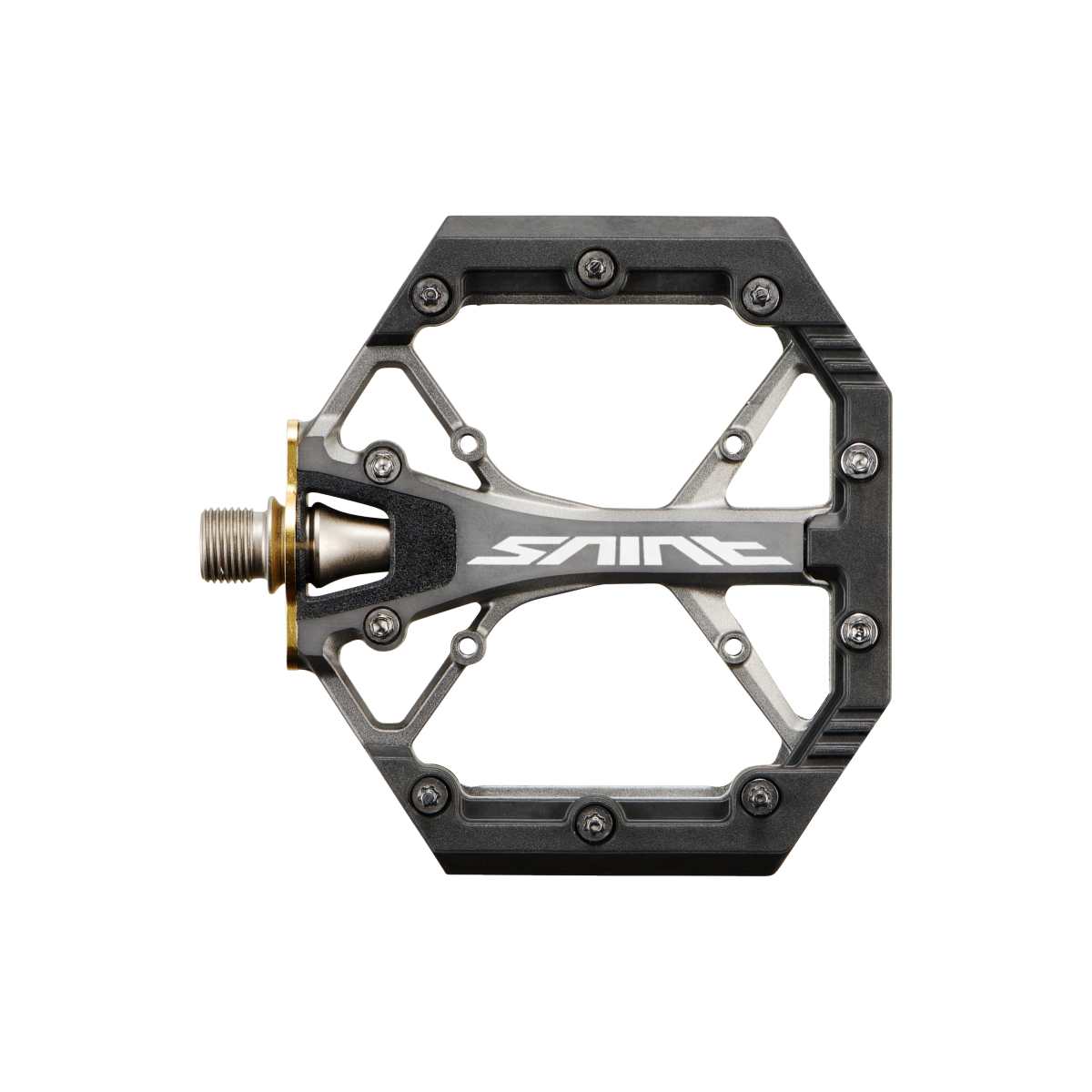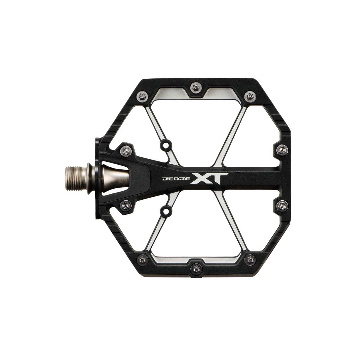 De kern van beide nieuwe pedalen zit in een duidelijke ontwerpfilosofie: een extra breed platform, een dun profiel en een uitgesproken ‘concave’ (een naar binnen gebogen of holle) vorm. Met een oppervlak van 121 bij 110 mm bieden zowel de SAINT als de Deore XT een bijzonder stabiele basis onder de voet.